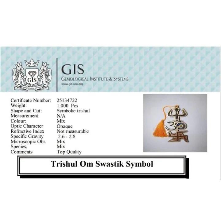 Sacred symbol made of three divine powers: Trishul for strength, Om for peace, Attracts peace, luck, and success, and Swastik for prosperity.